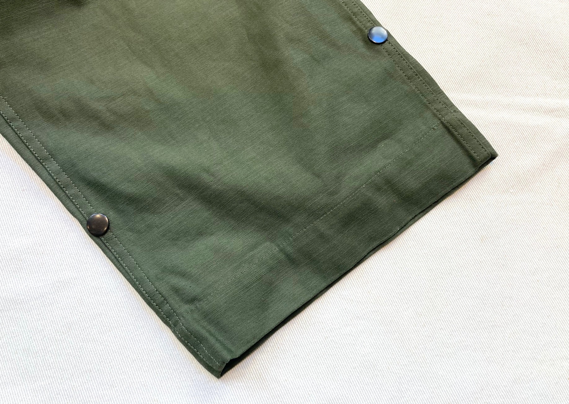 コットン製のシェルと着脱可能な防水処理された防寒用ウールのライナーで構成された開口部が大きく開き、ボタンではなくフィッシュテール尾錠とドットホックを使用し素早く着用できるようになっていました。