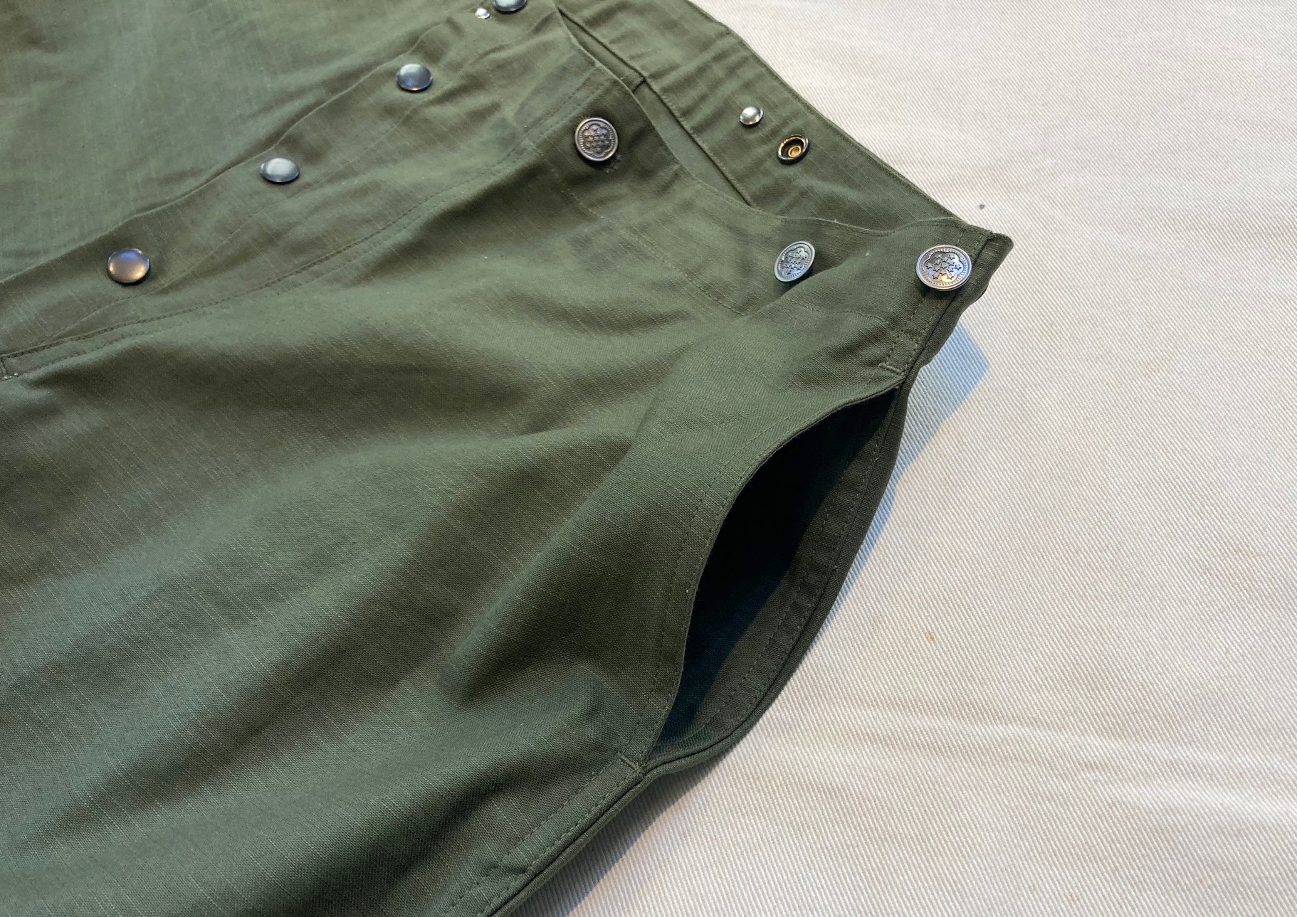 ベルト芯部分には、サスペンダーが付けれるボタン付き。